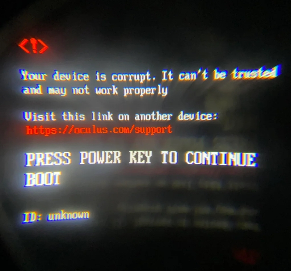 Đây được cho là màn hình hiển thị sau khi Meta Quest cập nhật thành cục gạch | Ảnh: SkarredGhost