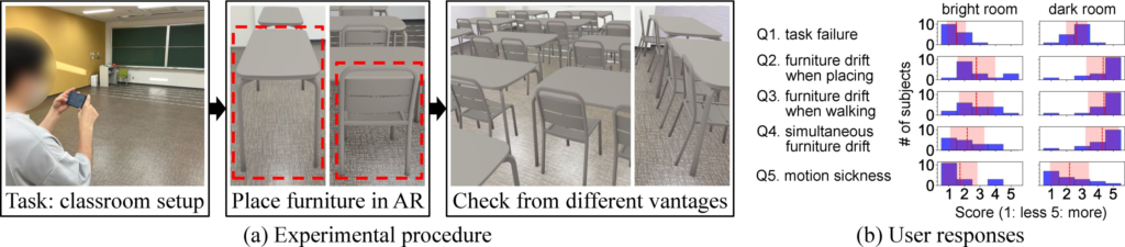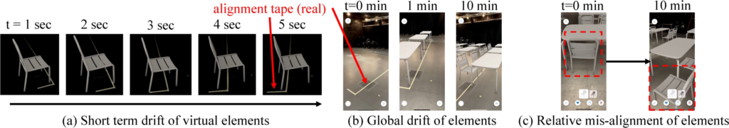“Chúng tôi nhận thấy rằng các yếu tố ảo có xu hướng ‘trôi’ đi khỏi vị trí ban đầu, điều này có thể gây chóng mặt và giảm cảm giác “thực” của vật thể ảo đó”, Shunsuke Saruwatari, tác giả cao cấp của nghiên cứu, cho biết. Kết quả của nghiên cứu rằng nhấn mạnh rằng các mốc thị giác (visual anchors) rất khó tìm/theo dõi khi ở xa, ở góc cực hạn, hoặc trong phòng tối; LiDAR không phải lúc nào cũng hoạt động tốt; và IMU có lỗi ở tốc độ cao và thấp, tích lũy theo thời gian.