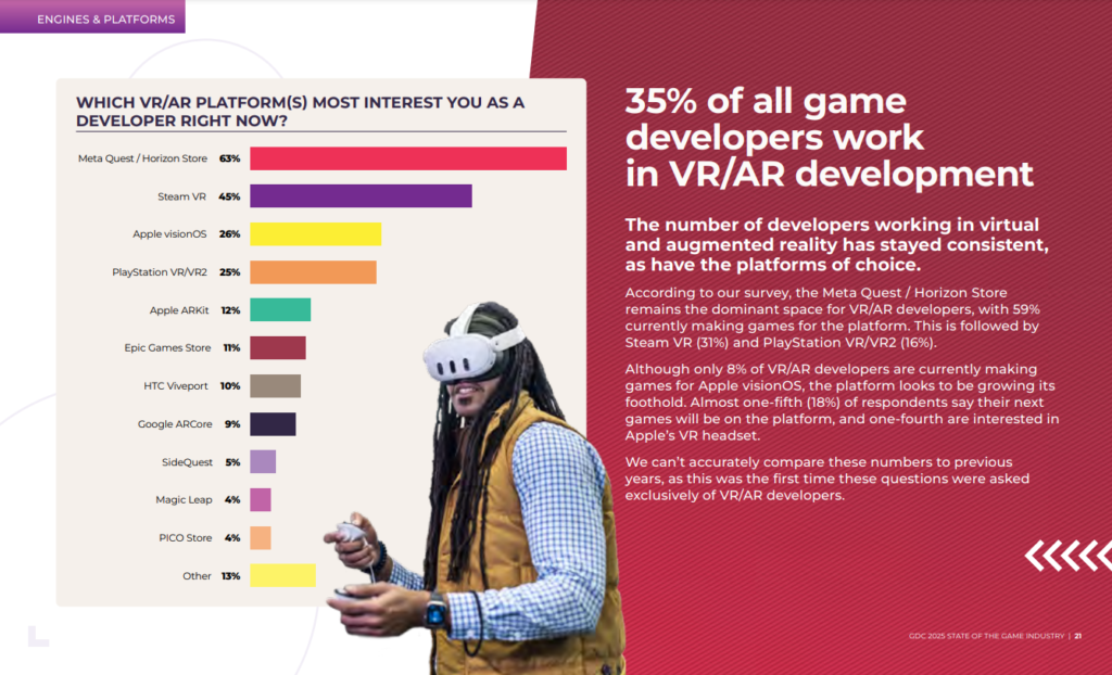 Tổng quan về thị trường VR | Ảnh: GDC 2025 State of the Industry report – trang 21